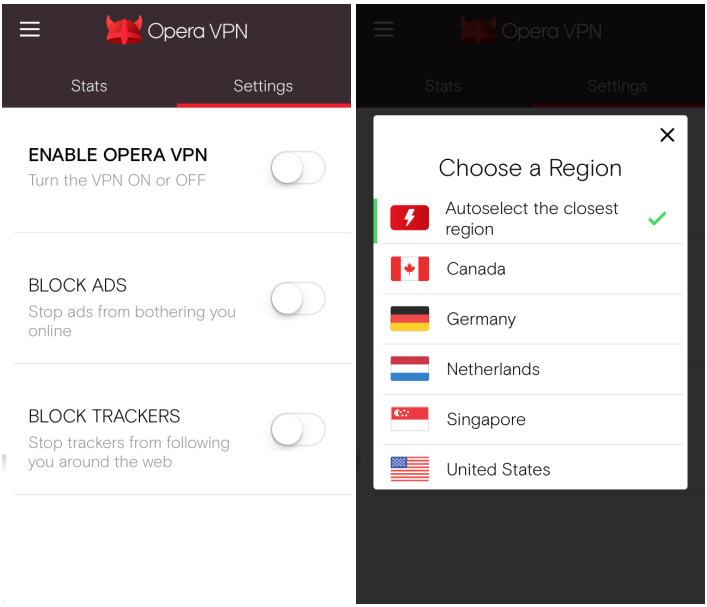 The OperaVPN app also removes ad-tracking cookies.That follow you around the web.