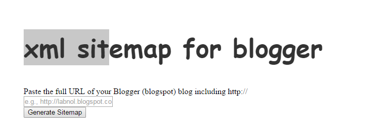 2. Enter your blog address.And it will give your blog sitemap code.for more details see the below image.